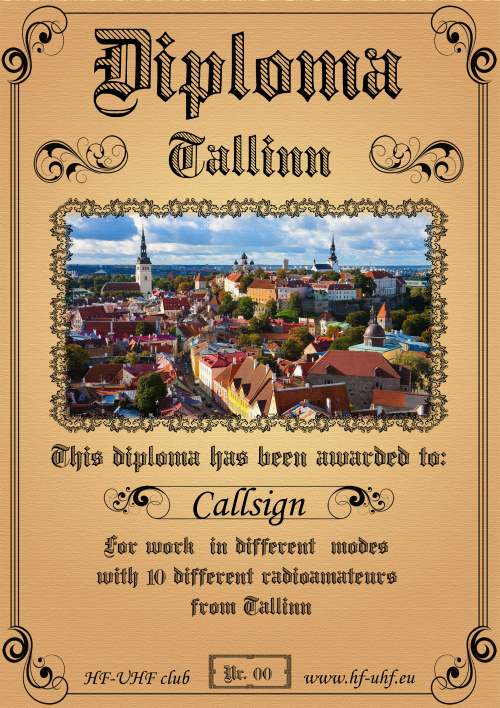 Radioamateur must establish at least 10 QSOs with different radioamateurs from Tallinn (ES1)  in any modulation.