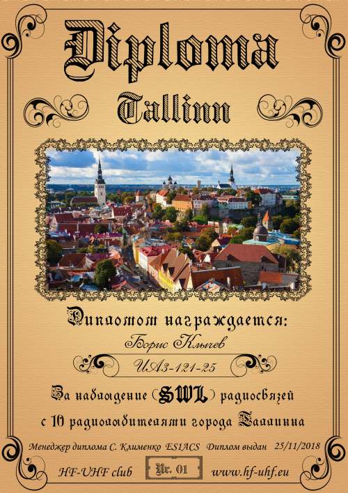 Радиолюбитель-соискатель должен провести не менее 10 радио связей любой модуляцией с радиолюбителями города Таллинна (ES1).